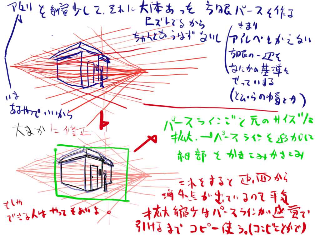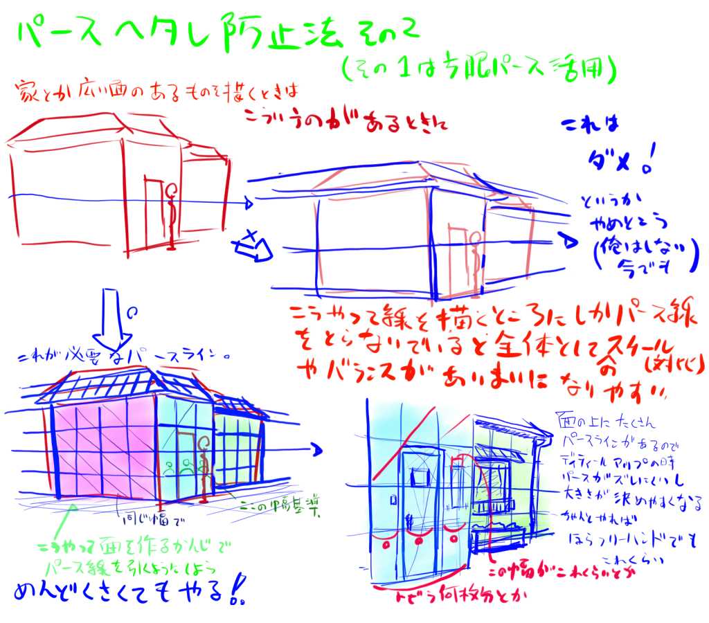 地面パースにも言えることだけどめんを作るパースラインを描くことで