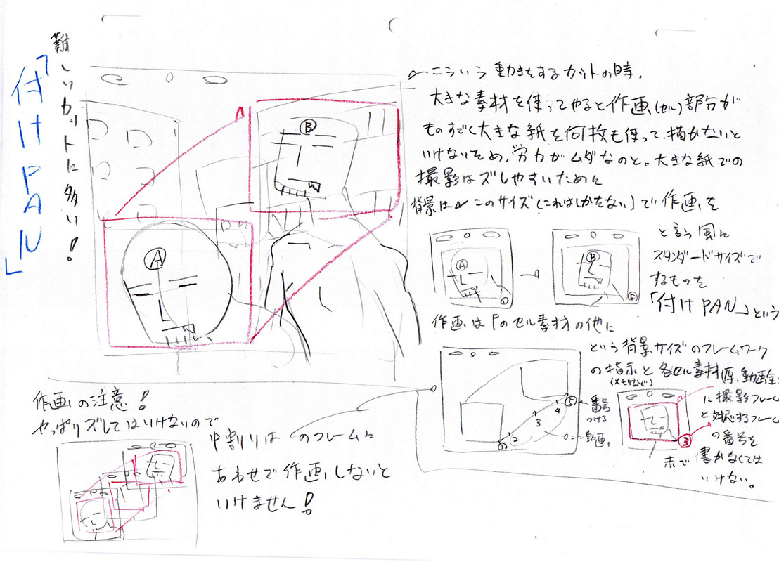 作画の作業としては普通のPANの場合大きな紙に描いて、フレームをどこからどこまでと指示を描くというもの